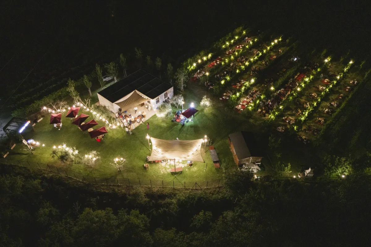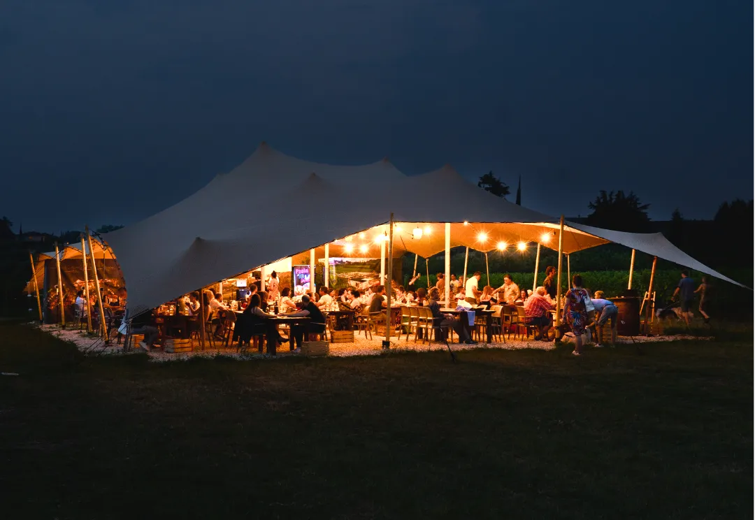Ci spostiamo sotto la nostra nuova tensostruttura vista vigna, con oltre 150 posti coperti.