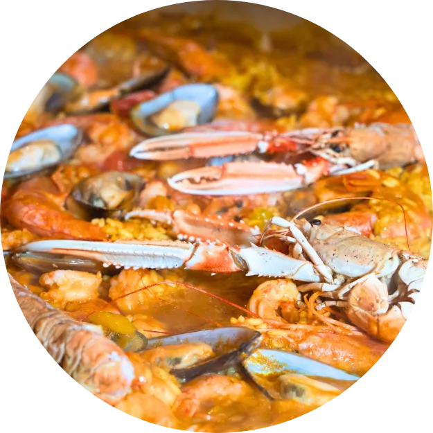 Prepariamo sul momento la nostra Paella de Marisco, accompagnata da antipasti tipici, sangria fresca e una colonna sonora live che ti farà battere il cuore.